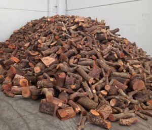 La leña se encuentra cortada con una medida de unos 25/30 cm. Y se presenta en sacas paletizadas (1 metro cúbico), para un mejor manejo y transporte.